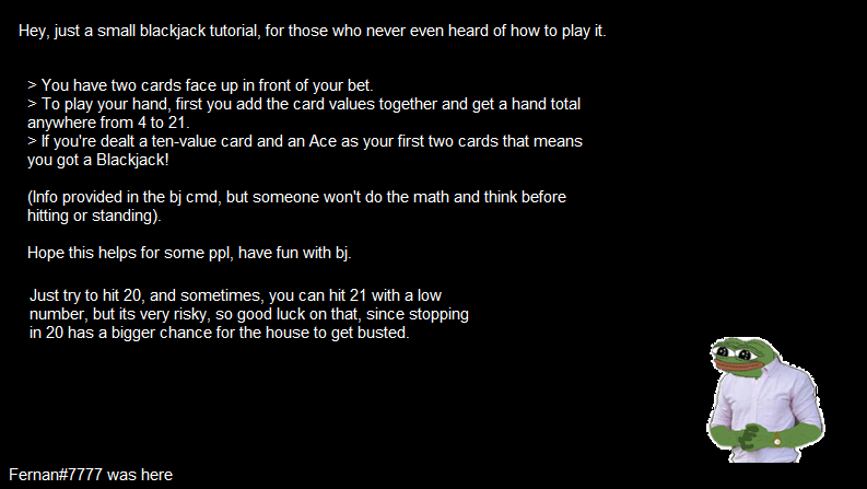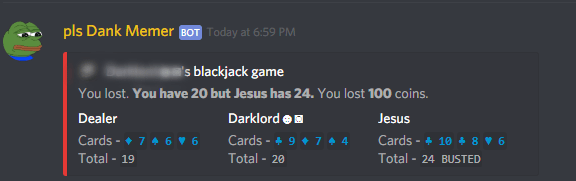 Command reminders, dank memer guides, calculators, heist starter, gambling tracker & tons of tools to run a dank memer server. Player whose cards sum equals to 21 or larger than dank . Bankrob rob someone's bank storage! Is dank memer blackjack rigged? You must be at least 18 years old to gamble at the casinos.